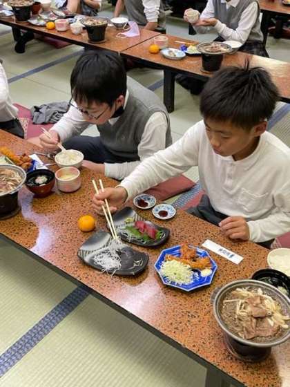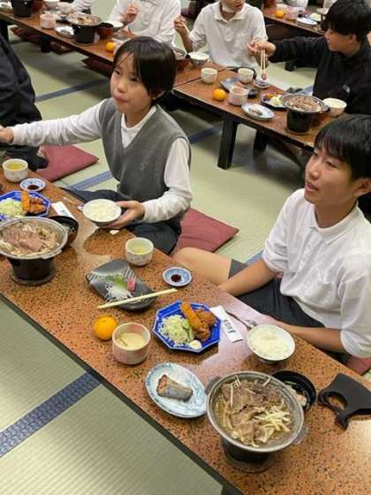 晩ごはんが始まりました。黙食は少しかわいそうだけど、しかたありません。しっかり食べています。
