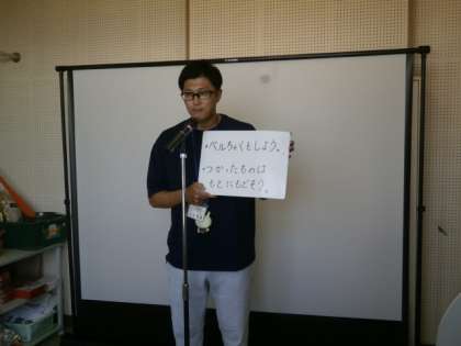 生徒指導主事の先生からは、チャイム着席を心がけることと、学校にあるみんなが使うものを使ったときはちゃんともとの場所に戻しておこう、というお話をしていただきました。