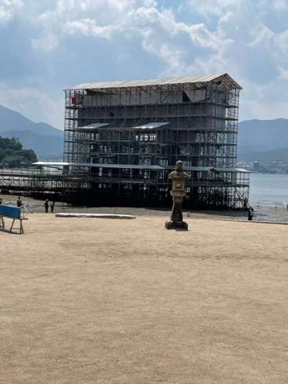 ちなみに、去年の大鳥居はこんな感じでした。修復完了して、どんな風になったのか楽しみです。