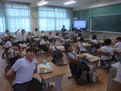 上の写真は2年1組さんです。当番さんが準備をしている間、みんなとっても静かに待ってくれていました♪下の写真は2年2組さんです。おいしい〜!とすてきな笑顔を見せてくれました!