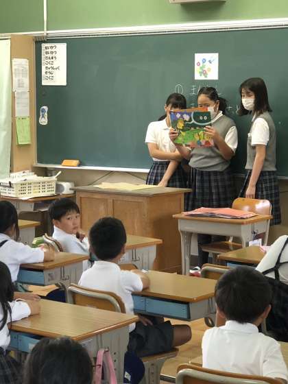 朝の時間を使って、図書委員会のみなさんが、紙芝居の読み聞かせを行いました。どのクラスの子どもたちもみんな熱心に聞いてくれていました。