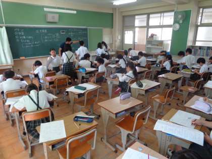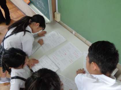このクラスでは、自分のペースでプリントの問題を解いていっています。