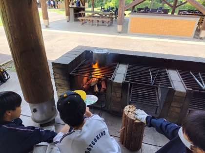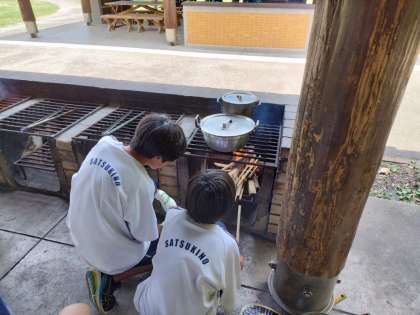 カレー作りが始まりました。火加減と野菜の切り方がポイントです。