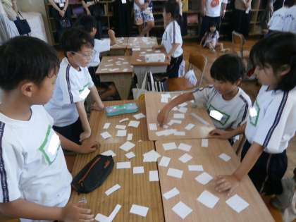 へんとつくりをカルタのようにし、2枚合わせて漢字になったらカードゲット♪というゲームで楽しく学習していました!