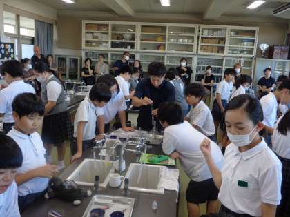 1コマめは、西校舎理科室で10円玉を使った実験。