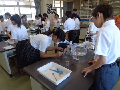 7年理科は、理科室において、酸素と二酸化炭素の性質を調べています。