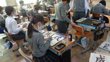はじめに動画で、きれいに書くためのヒントをもらい、練習をしています。