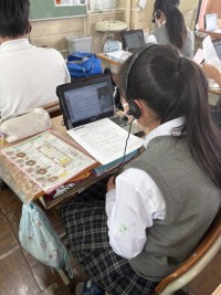 8年社会(歴史的分野)の授業です。時代の特徴について、資料を見ながら考えています...