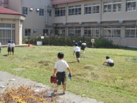 技術職員さんが,中庭をきれいにしてくださいました。草が短くなったら,虫見つけがし...