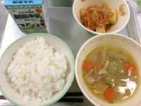 今日の給食には、目を保護する「ビタミンA」のもととなる栄養素や、目の疲れをとれやすくする「アントシアニン」をたくさん含む食品を使っています。