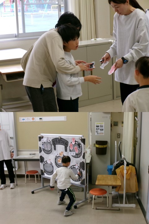 動物の鳴き声を聞いて、その動物を選びました。選んだ動物の名前を言う活動もしました。