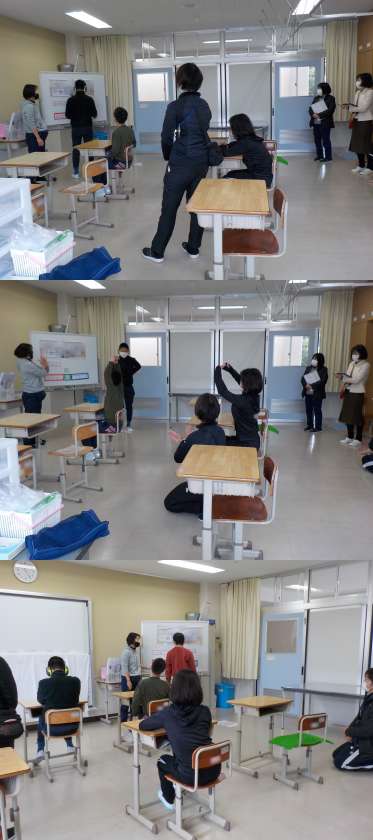 「物語の内容を振り返ろう!」のテーマで学習をしています。本の読み聞かせをしたあとで、ひとつの場面の絵を見ながら、その場面の内容に合うひらがなのカードを選んで文章を完成させていきました。