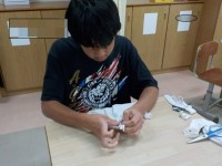 時間や温度を確認しながら、煮込んだ具材に、カレー粉を入れています。