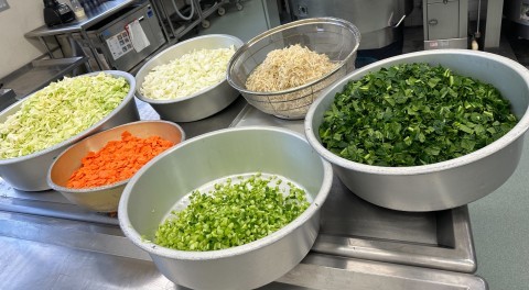 まだ食べられるのに捨てられるものを「フードロス」といいます。今日は、昆布でだしをとったあと、刻んでおでんに入れることで、まだ食べられる食材を無駄なく使っています。フードロスを減らす工夫の一つです。
