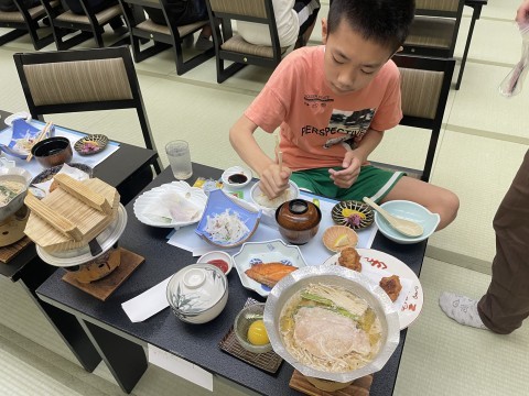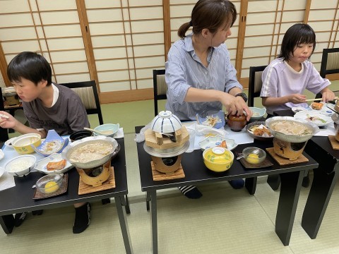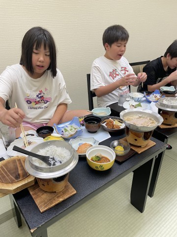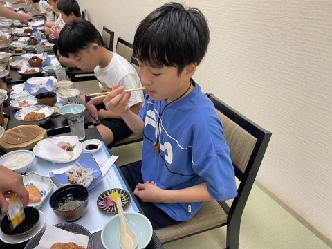 朝食はもりもり食べる子、まだ眠そうな子、色々な子どもがいます。