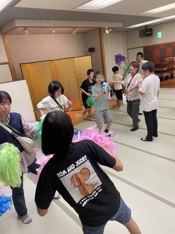 夜の集いの前半はカラオケ大会で大盛りあがり!