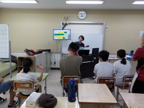 ハッピィバースデーの曲に合わせながら、ウクレレを弾きました。曲をよく聞き、タイミングを合わせて弾くことができました。