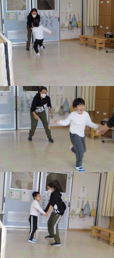 個別学習のあと、青と赤のカードを使ってカードめくりをしました。どちらの色のカードが多いか「多い・少ない」の学習をしました。最後にお楽しみのふれあい遊びをしました。