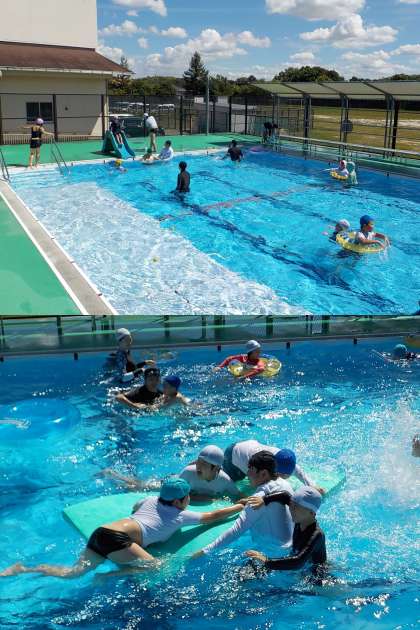 今日は小学部2・4・6年生の登校日でした。2年生は中庭で水遊びをしました。4年生は宿泊学習の振り返りや感想の発表をしました。6年生はプール授業をしました。