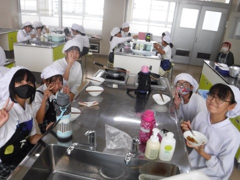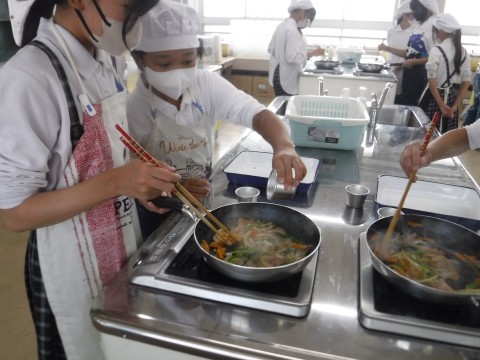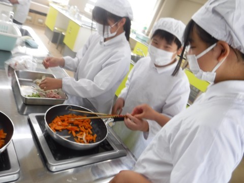 10月2日の3・4時間目に調理実習で野菜炒めを作りました。