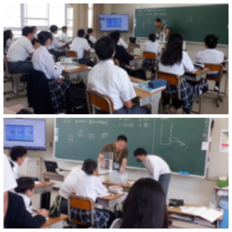 9年生は,水圧について学習しています。考察したあと,実際に水を使った実験で検証しました。
