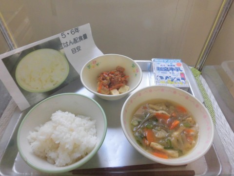 今日の小おかずは、揚げたじゃがいもに、鶏ひき肉・にんじん・たまねぎで作った