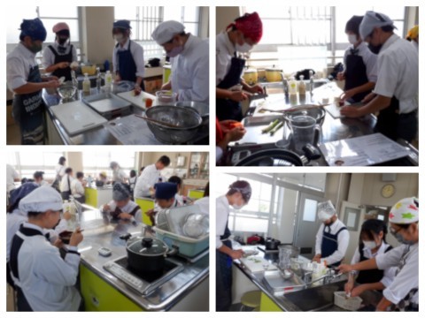 8年生は家庭科で調理実習をしました。メニューは「豚汁」です。どの班もおいしく出来上がりました。