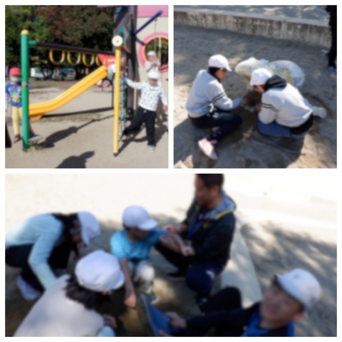 冒険ランドでは,みんなで仲良く滑り台や遊具,砂場で遊びました。