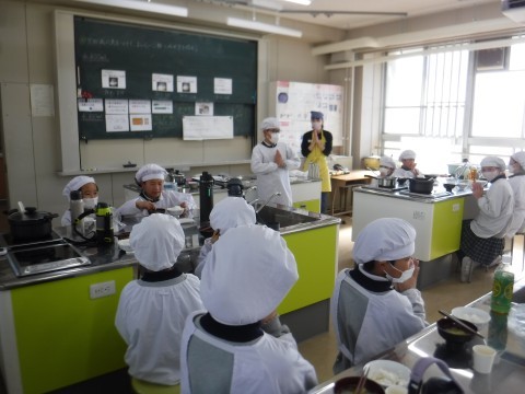 8時30分に集合して,お米を水につける等の事前準備をしました。調理中は,役割分担を決めて,てきぱきと進めることができました。試食では,自分たちで作った料理をおいしくいただきました。一方,ご飯を鍋で炊くのに苦戦した班も多く「炊飯器にありがとうって言わな」「料理って大変やな」という声が聞こえました。
