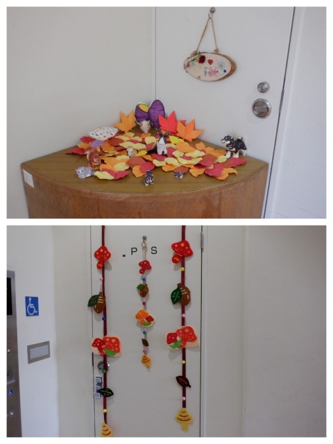 創作活動部では,季節に合わせて制作した作品を,エレベータホールに飾ってくれています。