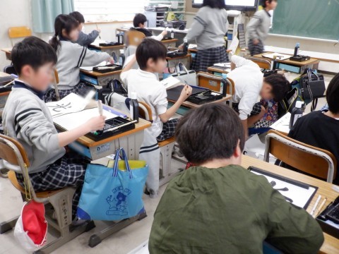 4年生は理科です。水のあたたまっていく様子を,どのようにすれば観察できるのか考えています。