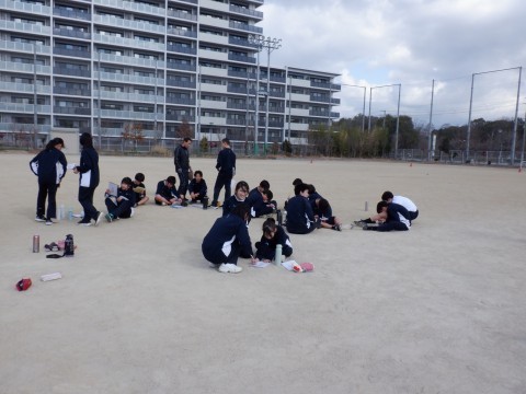 7年生は体育です。持久走をした後,自分の記録を記入したりラップタイムを計算したりして,自分の走りに活かしています。