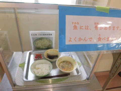 今日の給食には、「いわしのかば焼き風」と「福豆」が出ます。