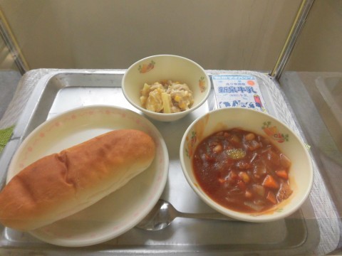 今日は、大豆を使った「ビーンズシチュー」が登場します。よくかんで食べましょう。