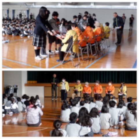 見守り隊の方からは,「これからも事故に気を付けて登下校してください。見守っています。」とあたたかいお言葉をいただきました。