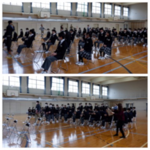 1時間目,中学校では,13日に行われる卒業式全体説明を行いました。