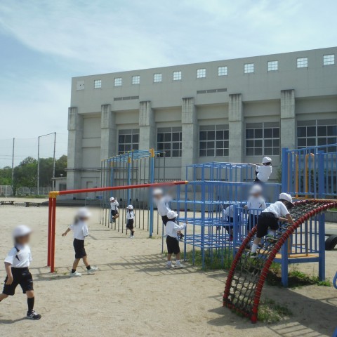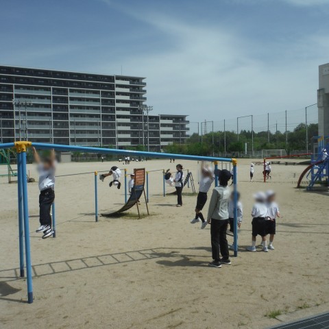 子どもたちは遊具やうんていを使ってめいいっぱい体を動かしました。