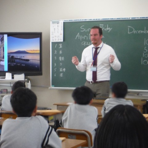 NSの先生が自己紹介の中で好きなものを英語で伝えてくれました。