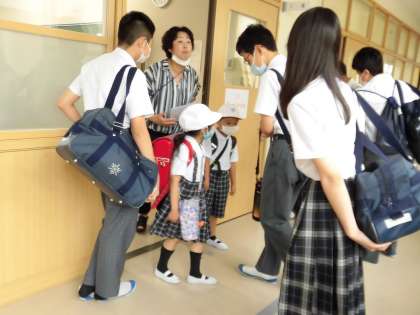 自分の班の教室まで9年生に連れて行ってもらいました☺