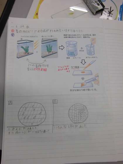 光合成が葉っぱのどの部分で行われているかを学びました。