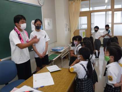 朝,中学生が「目安箱」について説明に来てくれました。中学生が教室に来てくれるだけで,1年生は大喜びです。みんな近くまで集まって,一生懸命聞いていました。