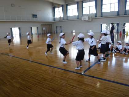 3時間目に,体育館で体育を行いました。こまめに水分補給をしながら,みんな一生懸命にリレーなどに挑戦していました。