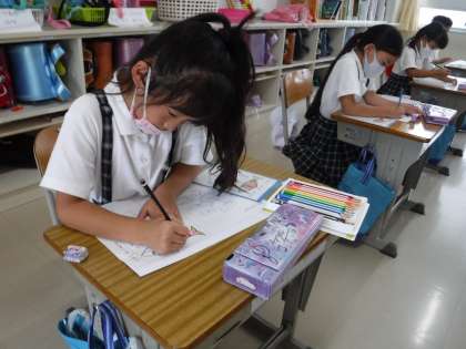 4時間目に,体育をテーマに「お魚作文」を書きました。少しずつ書くことに慣れてきたようです。