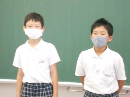 続いて、児童会よりあいさつ運動についてお礼と感想の言葉がありました。児童会、生徒会、有志の皆さん、雨の日も暑い日もあいさつ運動をお疲れさまでした。ありがとう!
