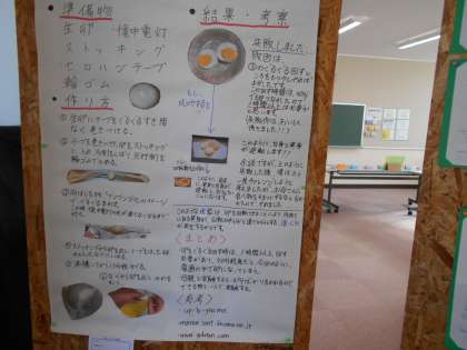 理科の展示作品です。理科展に出展された作品です。実験や観察したことをわかりやすいレポートで作成していました。とても興味深い発想力豊かなレポートでした!