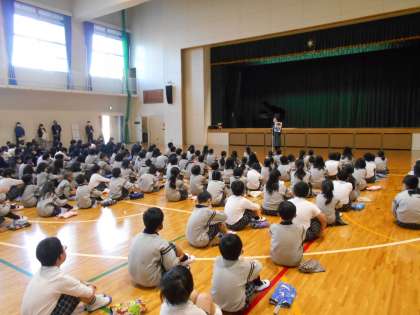学園長のお話は,みんなの大好きなコナン君のイラストを見せながら,口に出す「言葉」の大切さについてでした。素敵な言葉をまわりの人に伝えていきましょう!