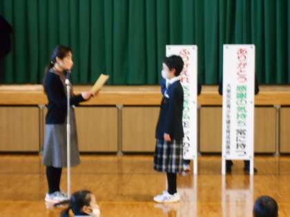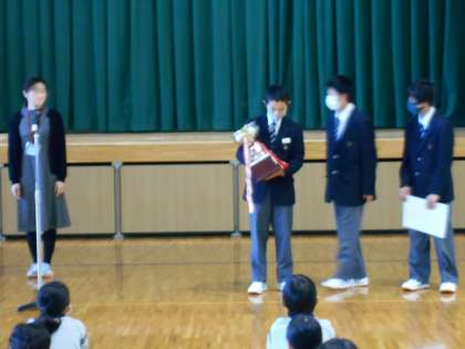 表彰の伝達のなかに,野球部が優勝をしました!立派な優勝カップをいただきました。