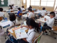 国語では,ビブリオバトルに取り組んでいます。どの本を紹介しようかと,みんな真剣な表情で本を選んでいました。