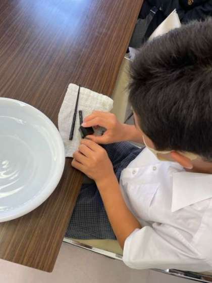 一生懸命お箸を削り、アワビの貝殻を見つけることができました!