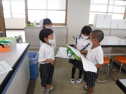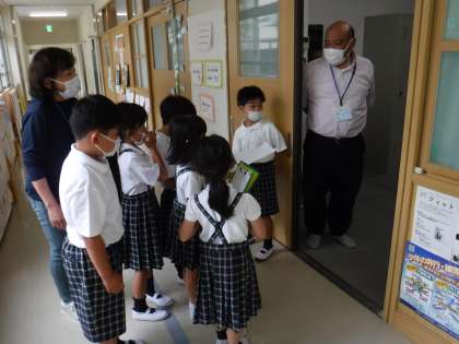 3時間目に,1・2年生で「学校たんけん」を行いました。グループを組み,2年生の案内でいろいろな教室を見て回りました。